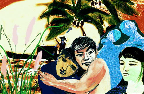 Kim vào thăm Luông, Hoa biết tính chồng, cô mời Kim ở lại ăn cơm trưa rồi chạy xuống ngã ba mua vài thứ thức ăn, xị rượu, dĩa lòng heo để chồng lai rai với bạn. Cô nghĩ, cũng tội, lúc mới gặp Kim, Luông nghe giọng nói rặt Nam bộ của Kim khiến Luông bỏ ngang tô hủ tiếu đang múc cho Hoa, Luông hỏi: