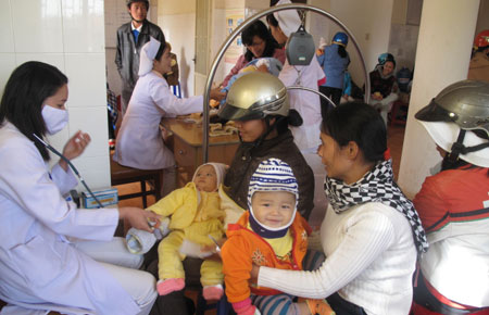 Các bà mẹ quan tâm chăm sóc y tế để cho con khỏe mạnh. |