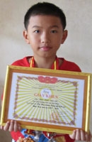 Cậu bé dành Huy chương Bạc cấp quốc gia môn tiếng Anh trên mạng rất vinh dự, may mắn khi có bố mẹ là giáo viên dạy tiếng Anh. “Không ỷ lại vào bố mẹ, em lúc nào cũng cố gắng học tập thật tốt để ngày càng giỏi hơn và không bị thầy cô phê bình” - Đức Dương chia sẻ một cách tự nhiên.