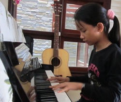 Bắt đầu học tiếng Anh trên mạng, em đã chủ động rèn luyện kỹ năng nghe, nói, đọc, viết, học thêm tiếng Anh ở trường. Qua 3 năm học, đến nay em có thể nghe và giao tiếp thành thạo. Ngoài việc học các môn văn hoá, Gia Hân còn chơi đàn organ và đàn piano rất hay.