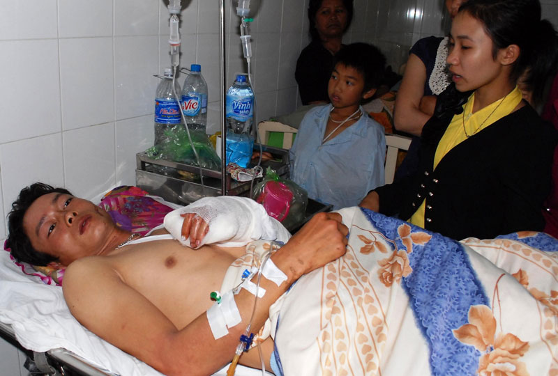 Trước đó, vào chiều ngày 7-10, anh Nguyễn Văn Tiến nhập viện trong tình trạng bày tay trái bị chặt gần đứt lìa từ ở cổ tay, chỉ còn dính lại phần da, bệnh nhân kiệt sức do mất máu nhiều.