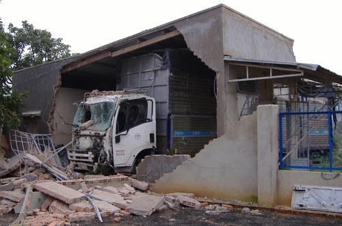 | Xe tải lao thẳng và làm tan nát căn nhà số 217 |