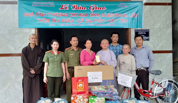 Theo đó, Phòng An ninh đối nội Công an tỉnh đã trao căn nhà tình thương cho gia đình chị Mai Thị Ái Liên (thôn Tân Xuân, xã Gia Viễn, huyện Cát Tiên). Căn nhà được xây dựng gồm 1 phòng khách, 2 phòng ngủ và 1 phòng bếp với diện tích sử dụng là 64 m2. Tổng kinh phí là hơn 200 triệu đồng. Trong đó, Phòng An ninh đối nội Công an tỉnh vận động các nhà tài trợ hỗ trợ 70 triệu đồng, còn lại là sự giúp đỡ của chính quyền địa phương, ban ngành, đoàn thể và của gia đình, bạn bè, người thân về tiền, ngày công lao động.