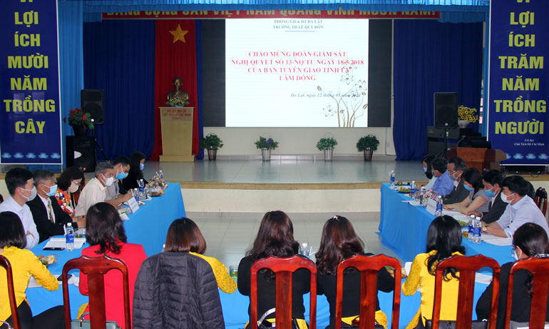 Những số liệu trên cho thấy kết quả thực hiện các mục tiêu của Nghị quyết 13 có nhiều điểm sáng. Đối với thực hiện các nhiệm vụ, giải pháp theo tinh thần Nghị quyết 13, Đoàn giám sát việc lãnh đạo, chỉ đạo và triển khai thực hiện nghị quyết này (do Ban Thường vụ Tỉnh ủy quyết định) có nhiều đánh giá và ghi nhận. Đó là, nâng cao nhận thức, trách nhiệm trong công tác lãnh đạo, chỉ đạo, điều hành của các cấp ủy đảng, chính quyền; công tác phối hợp của các tổ chức chính trị, đoàn thể, Nhân dân trong việc phát triển sự nghiệp GDĐT theo hướng bền vững. Tập trung thực hiện tốt công tác quy hoạch mạng lưới các cơ sở giáo dục gắn với yêu cầu đào tạo nguồn nhân lực. Bồi dưỡng đội ngũ CBQL, giáo viên triển khai chương trình, sách giáo khoa theo chương trình giáo dục phổ thông mới. Đó còn là, triển khai mô hình trường học mới, lớp học thông minh, tiến tới quy hoạch tổng thể hệ thống trường học thông minh phù hợp với Đề án “Xây dựng thành phố Đà Lạt trở thành thành phố thông minh”. Đẩy mạnh công tác xã hội hóa giáo dục. Tạo điều kiện và phát huy vai trò của các trường đại học, cao đẳng trên địa bàn phát triển ngang tầm khu vực và của cả nước, nghiên cứu, đào tạo, bồi dưỡng nguồn nhân lực chất lượng cao về lĩnh vực nông nghiệp công nghệ cao, công nghệ sinh học, du lịch, xã hội nhân văn. Tăng cường đầu tư xây dựng cơ sở vật chất, thiết bị đáp ứng yêu cầu nâng cao chất lượng dạy học và công nhận trường đạt chuẩn quốc gia. Xây dựng, thực hiện tốt các cơ chế, chính sách phát triển sự nghiệp GDĐT.